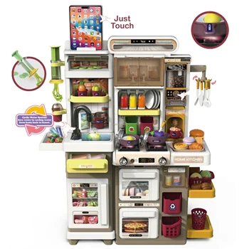 66cm Kitchen Set Table Ware Kids Toys Kitchen Cooking Game with Running Water Recording Lighting Colored Clay