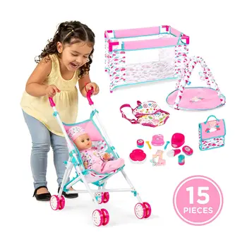 15-Piece 13.5-Inch Newborn Baby Doll Nursery Role Play Set with Stroller