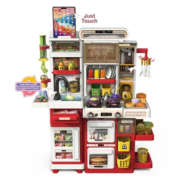 Plastic Kitchen and Food Toy Table Ware Cooking Game Kids Kitchen Set with Running Water Recording Lighting Colored Clay